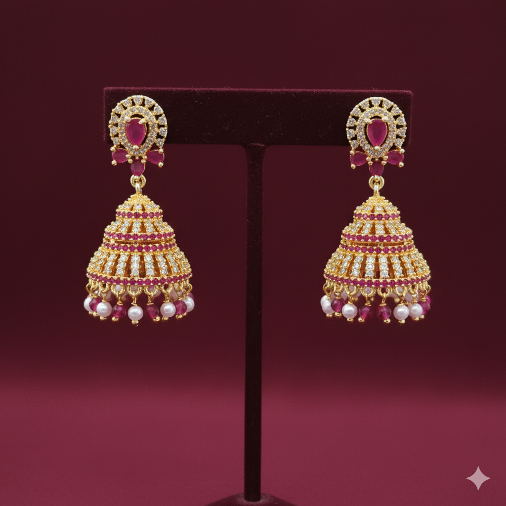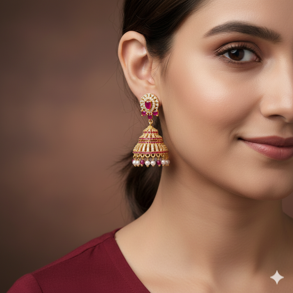 Designed with intricate detailing and a regal aesthetic, these earrings are crafted to mimic the look of solid gold temple jewelry. They are the ideal accessory for festive occasions, weddings, and cultural celebrations.