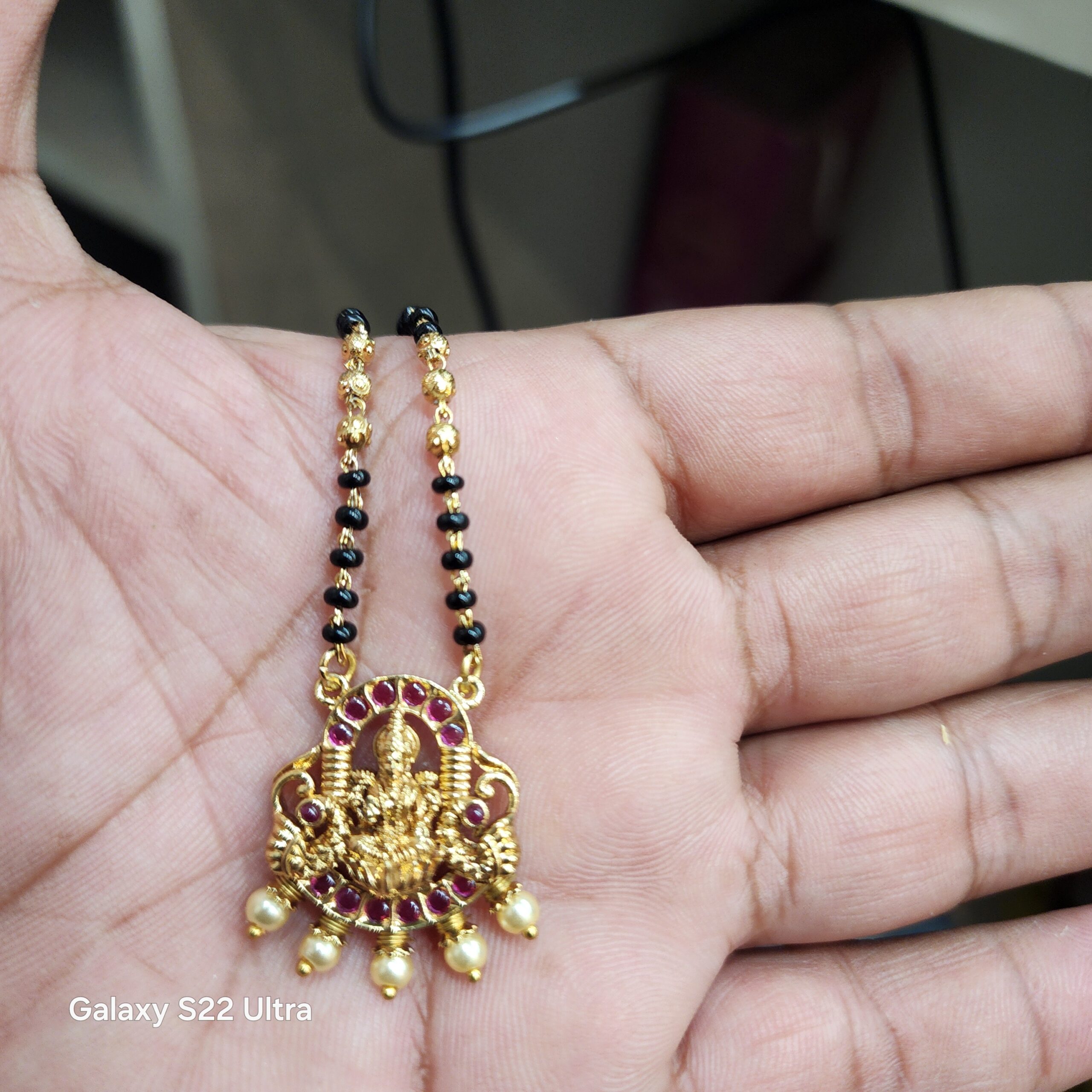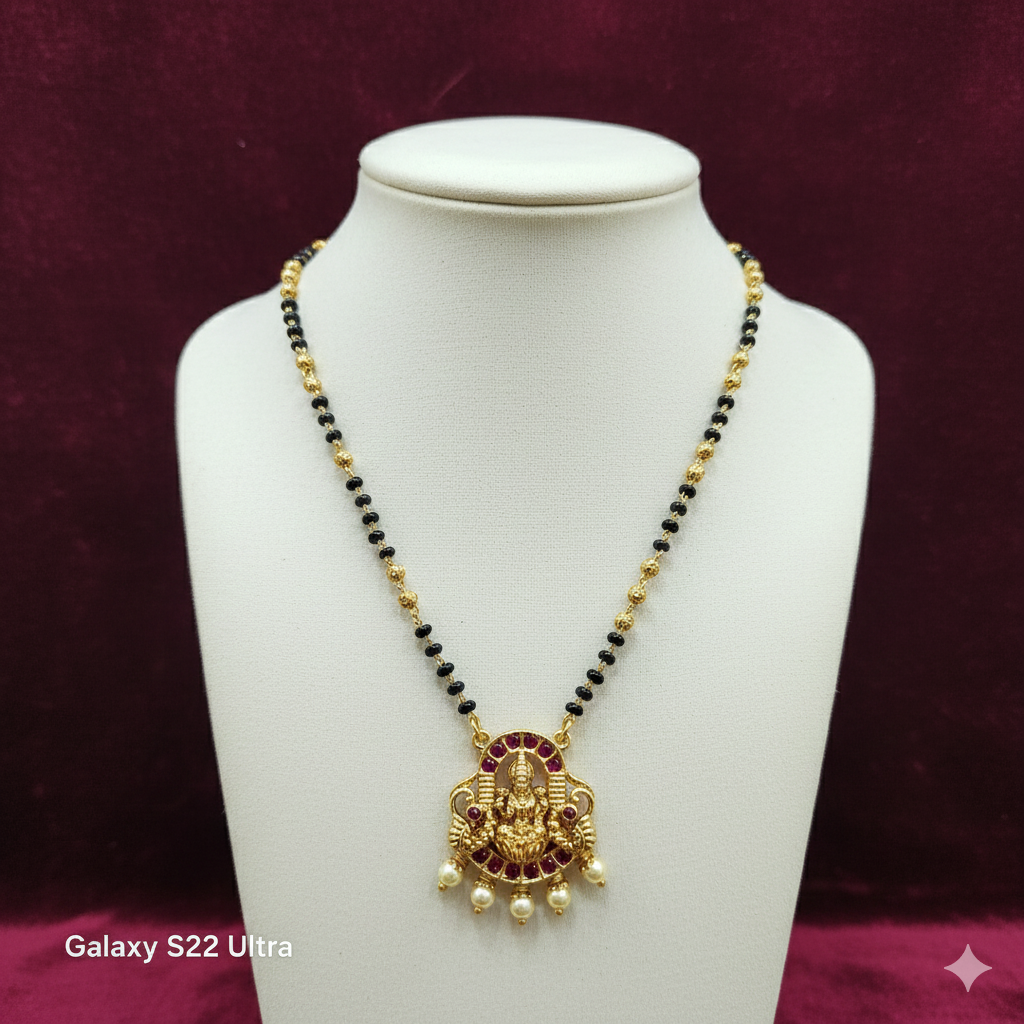 Color and Contrast: The deep, matte black color of the beads provides a sharp visual contrast against the high-shine gold chain and the vibrant red, green, and white gemstones used in the pendants.