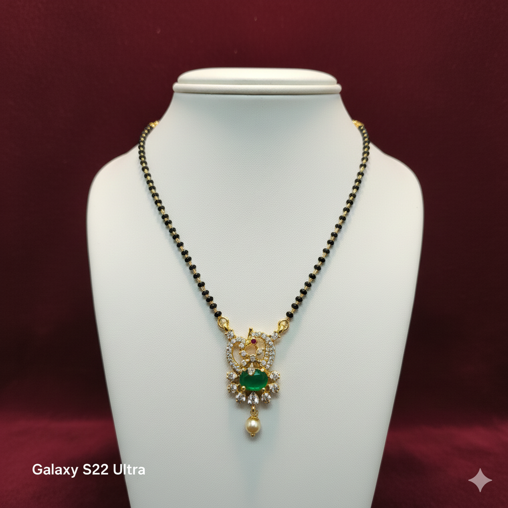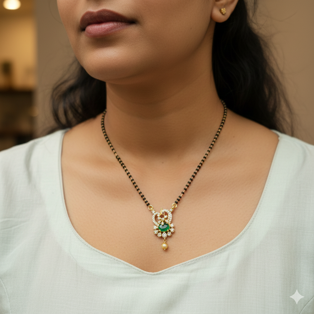 This mangalsutra necklace features a traditional and elegant design, combining cultural significance with contemporary aesthetic details.